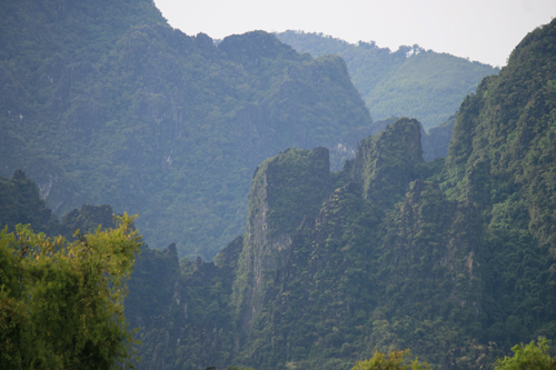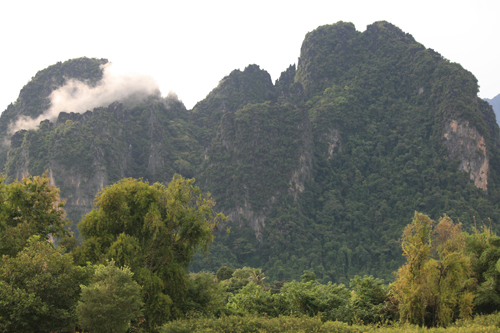 One of the most striking aspects of Vang Vieng is the hillside landscape that watches over the town from the other side of the Nam Song.