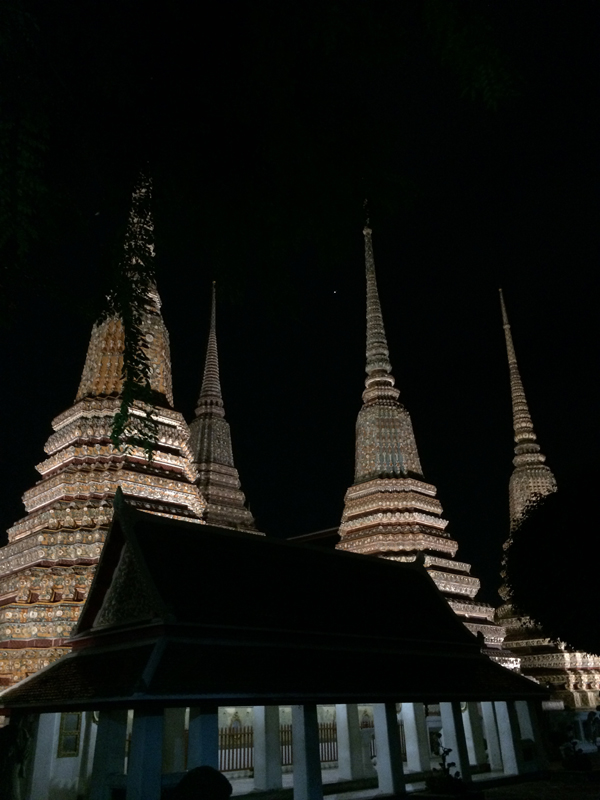 This is a group of four large stupas at Wat Pho, each standing 42 metres high. The first one was built by King Rama I whereby the remnants of the golden Buddha from Ayutthaya, that was melted down and stolen by the Burmese c1767, was to be kept. King Rama III built two more for himself and his father, Rama II. the final stupa was built by Rama IV.