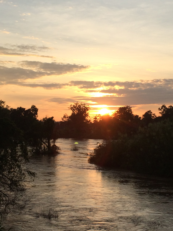 So, after a day of cycling, swimming, kayaking, boating and sightseeing it is time to soak up the sunset from any number of vantage points. On our first visit Heidi and I managed to watch the sun disappear from the old railway bridge. On my second trip I watched the daily solar phenomenon from across the rice paddies on Don Det.