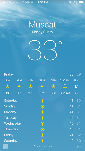 One word of advice if you are planning a trip: the times to avoid are Ramadan (most places shut during the day) and the summer months (June – August) where the weather is too hot to be outdoors for most. This is the temperature currently at the beginning of May for the week. The words on everyone’s lips are “Summer is Coming”.