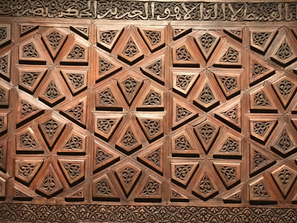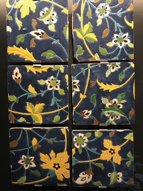 The Museum of Islamic Art had a fascinating section that included ceramics, textiles and woodwork dating back to the 7th century. Here are just some of the stunning samples we saw, such as the Turkish tile above c1560, that uses a technique called ‘fritware’ in which ground glass is mixed with the clay and baked at high temperatures to ensure appropriate fusion with the ceramic.