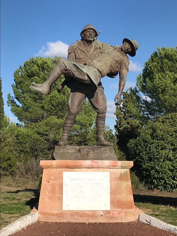 Soldiers from both sides found respect for each other during the campaign. The Johnnys and the Mehmets were determined in their attacks and resilient in defence, yet full of humanity and compassion for the wounded. The image below shows a statue of a Turkish soldier bringing a wounded Australian to the ANZAC lines. The soldier was allowed to return to his platoon.